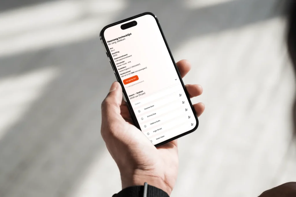 Met onze gebruiksvriendelijke software wordt alles rondom het vervoer eenvoudig geregeld. Gasten schrijven zich online in, wij delen de routes zo efficiënt mogelijk in en tijdens de reis kan iedereen eenvoudig inchecken via een handige online inchecklijst. Zo verloopt alles soepel en overzichtelijk, zonder extra werk voor jou.